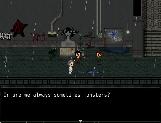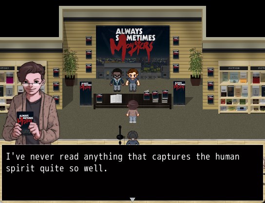 So that was Always Sometimes Monsters. There are quite a few reviews that call this a load of pretentious, overwrought tripe, but I didn't need to read them to know that this was the case, when I could have just watched the trailer, or even read the blurb. And the game did not disappoint on that front. I want to know what possessed Vagabond Dog to have half the major NPCs in this game philosophize to you minutes after you meet them...